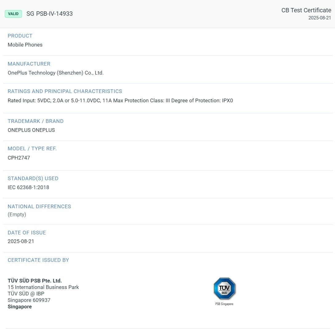Dalla certificazione TÜV affiorano dettagli che identificano le specifiche tecniche del OnePlus 15, un telefono che evolverà nella velocità di ricarica rispetto al modello OnePlus 13. Le informazioni, trapelate grazie al superamento dei test normativi, chiariscono in modo affidabile la capacità energetica del telefono, la cui presentazione sul mercato appare imminente.